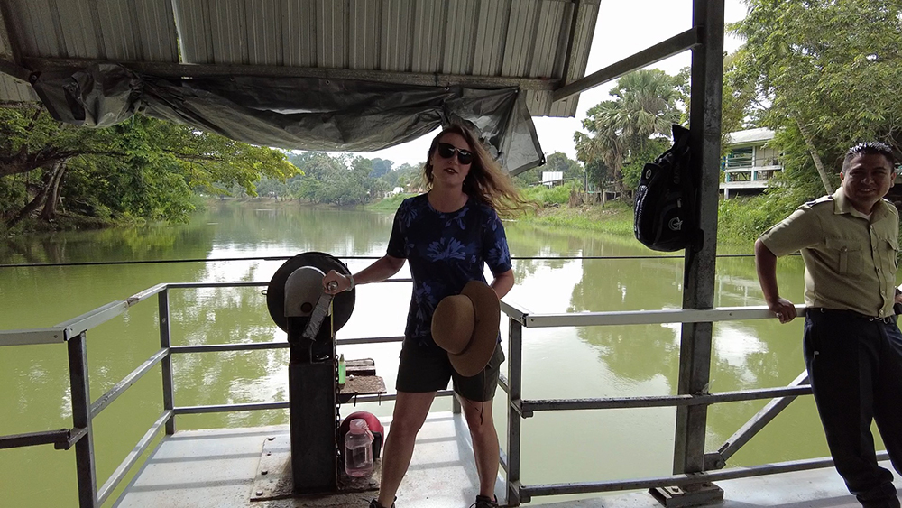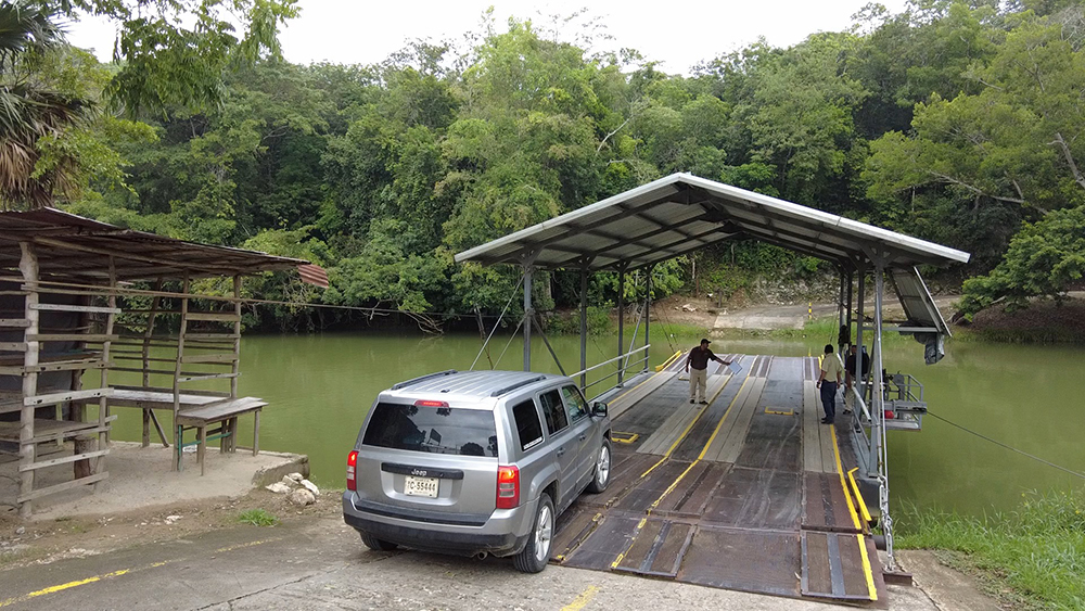 Whether it be a border crossing into another country, or an hour’s drive along an unfinished road, it seemed like reaching all of the Mayan sites on our Belize itinerary required a bit of adventure. By our fifth day in the jungles of the Cayo district, we knew to expect fun twists on every excursion, so it wasn’t too surprising when our GPS led us to a bridgeless crossing of the Mopan River. We were on our way to our third and final Mayan site of the trip, Xunantunich, and the route included a ride on a hand cranked ferry.
