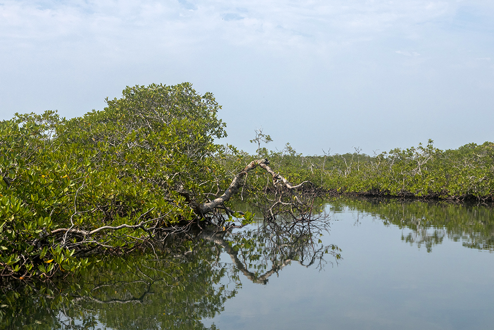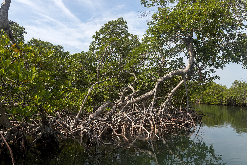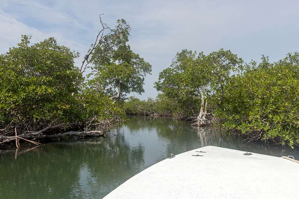 Once everyone was settled into a seat, our captain steered the boat out to a large bay, where he picked up the speed, and we zipped along faster than the shore birds that dove and swooped in the sky above us. The boat listed to side as we took a sharp turn into a mangrove swamp, where our captain expertly avoided the tangled roots of the mangrove trees.