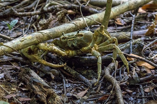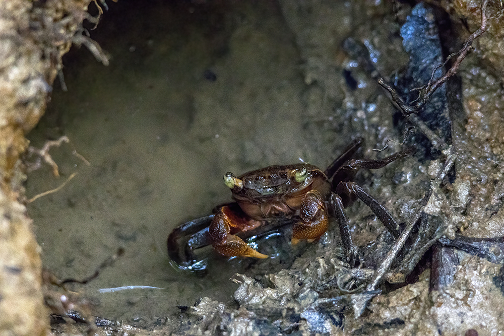 Raymond managed to find a massive crab with gigantic pinchers buried in the mud. He stuck his arm, elbow deep into the ground and pulled out the crab, then let go of it so we could watch it crawl away.