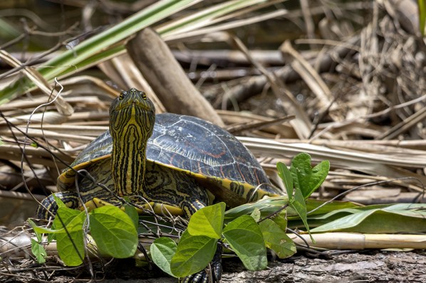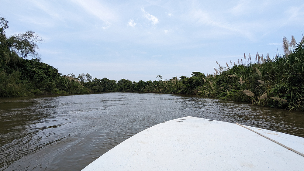 Our trip through the bamboo had led us nearly all the way back to the boat, so it was only a short walk before we were jumping back onto the bow, leaving a trail of muddy footprints on its once-pristine white shell. It was time to retrace our path back to Monkey River town for lunch, but that didn’t mean we couldn’t stop for more wildlife sightings along the way. A tropical slider turtle and a juvenile tiger heron were among the highlights of the return boat ride.
