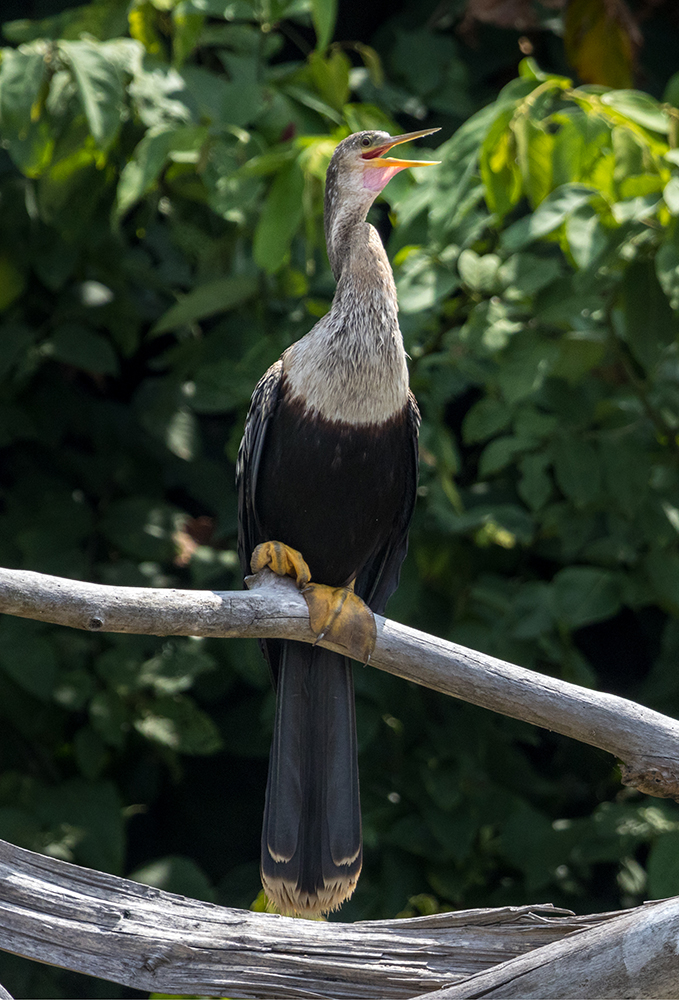 Once we were back aboard the boat, I began eagerly scanning the tangle of trees that lined either side of Monkey River, intently searching for any motion that seemed out place. At first, we saw the expected smattering of animals. Large green iguanas lounged on spindly tree branches, and turtles poked their heads out of the water. Little blue herons waded in shallow water, and cormorants and anhingas sunned themselves on fallen logs.
