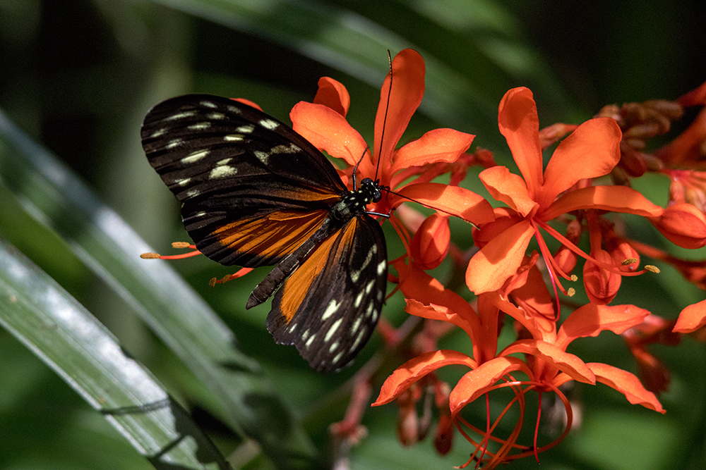 Once inside, we found ourselves surrounded by hundreds of fluttering butterflies in various shapes, sizes, and colors. Mexican blue wings, and various types of longwings were abundant, but my favorites were the blue morphos and the malachites. Butterflies landed on our shirts, and I couldn’t help but feel a little bit magical as the fragile creatures filled my vision.