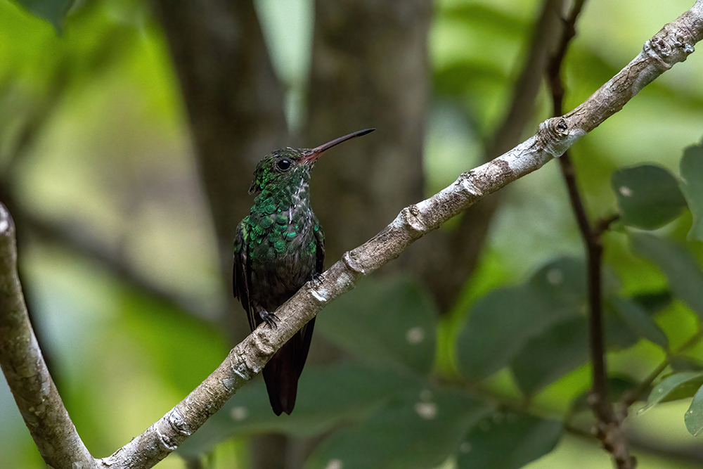I found a spot where the birds would perch for several seconds at a time between trips to the feeder, which made for some perfect photos. Hummingbirds are so fast when they’re in flight that it is extremely difficult to capture a photo before they zip away, but when they stop on a perch, you have a better chance. Of the many species of hummingbird that visited the feeders, my favorites were the long-billed hermit and the white-necked Jacobin. The Jacobin’s brilliant blue feathers were so beautiful.