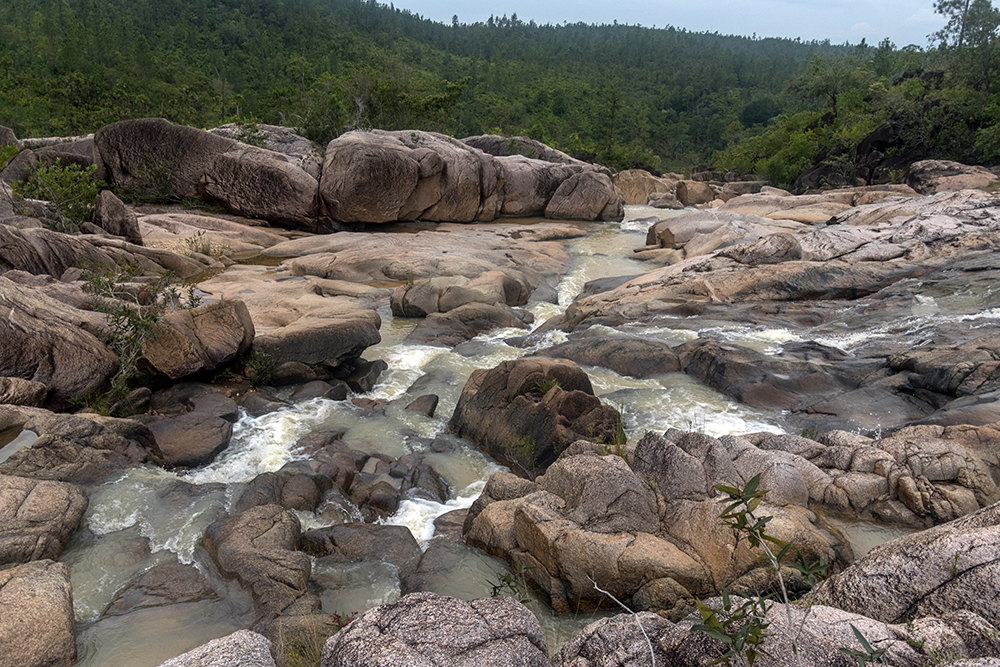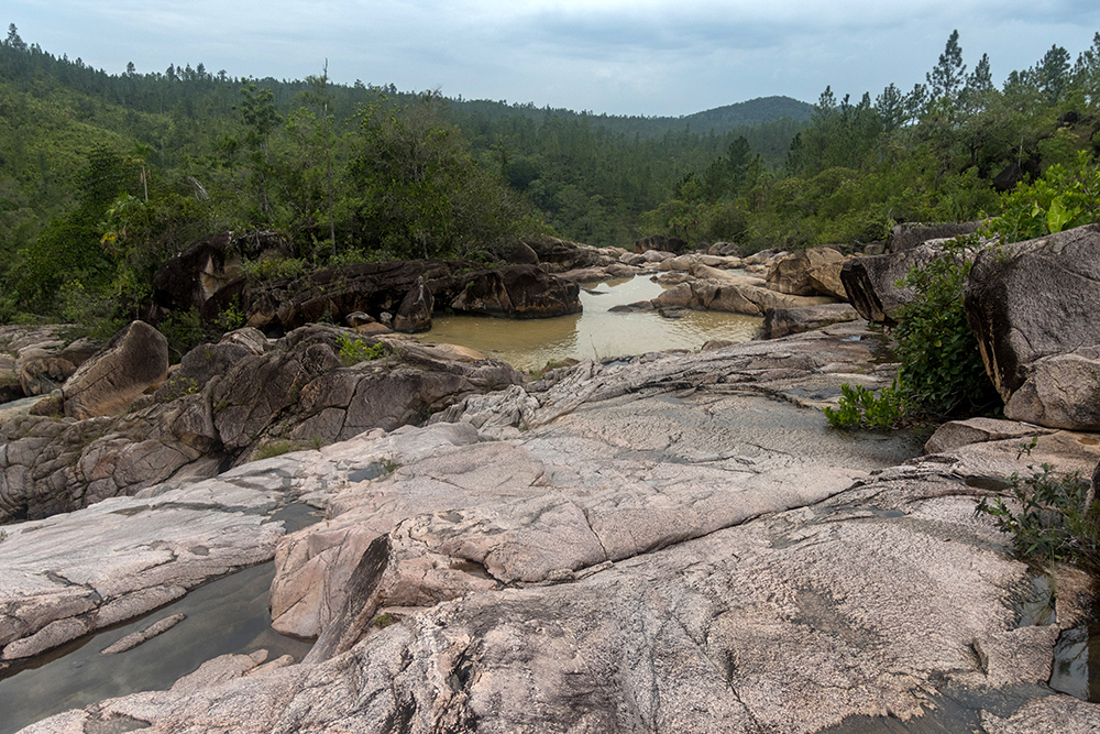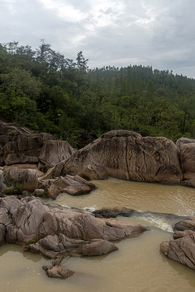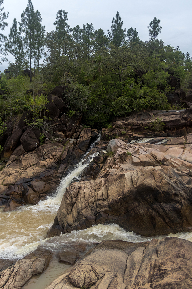 An hour later, we rumbled into the rutty, dirt parking lot at the Rio on Pools trailhead, and made the short hike down to the swimming hole. The first time we’d visited there had been a handful of other people enjoying the cool water, but this time the skies were cloudy, and we were all alone. Vince, Bonnie, and David hopped away across boulders, disappearing in short order, and I busied myself with taking pictures of the beautiful rocks and waterfalls that surrounded me.