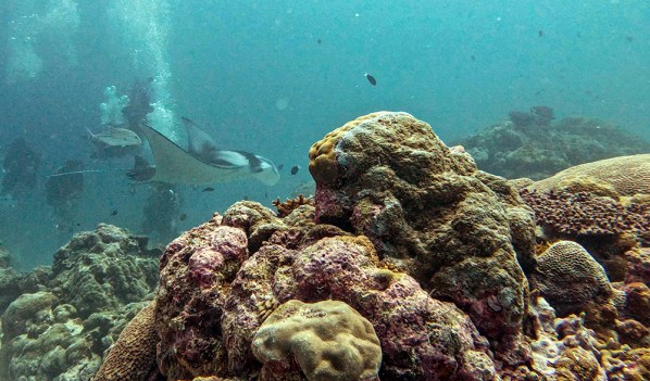 The German Channel is named such because it was artificially carved out of the reef when Palau was a German colony. The long gauge through the reef is visible from the surface because it is a different shade of blue than the surrounding water, and it looks unnaturally straight and perfect. The dive site is a known manta ray cleaning station, and I was very hopeful that we would see a manta as we dropped into our final dive of the trip.