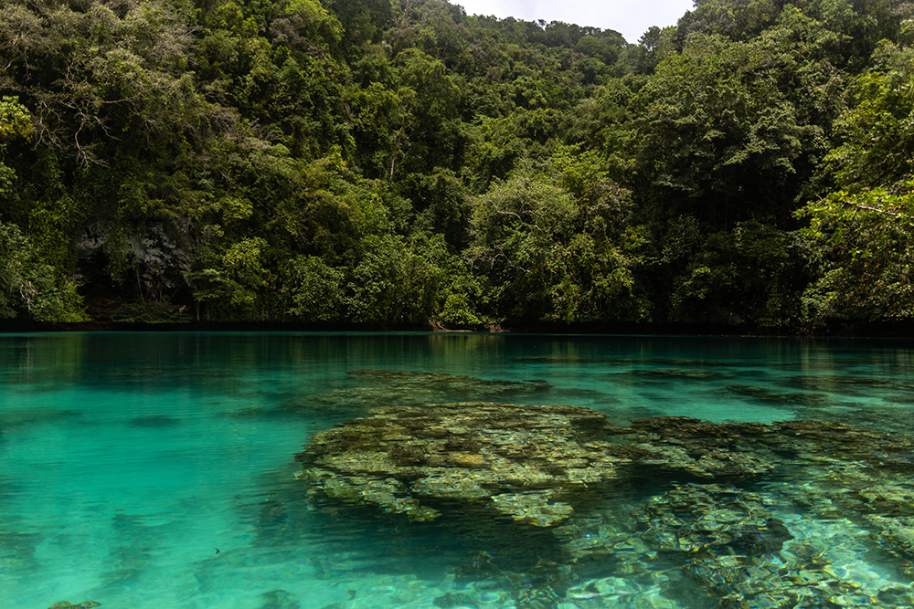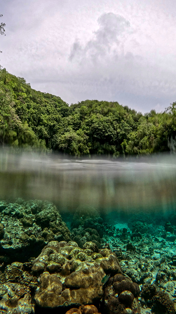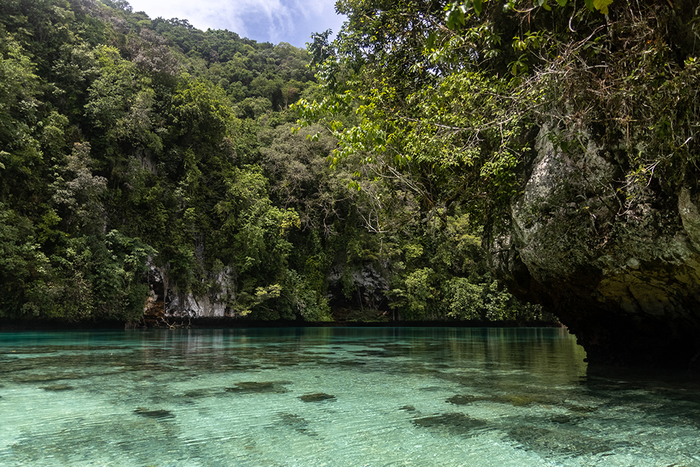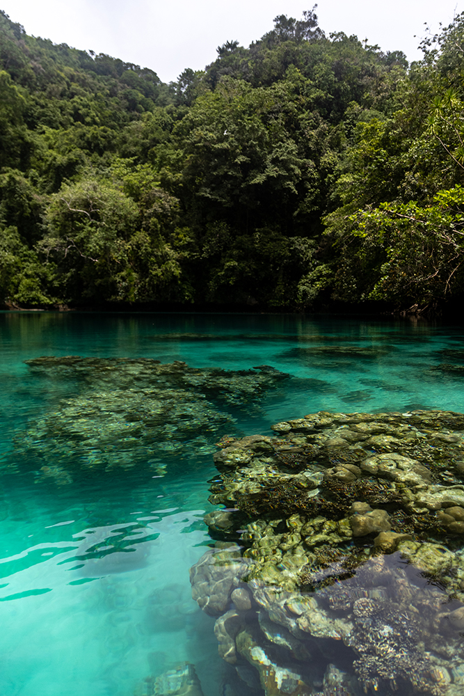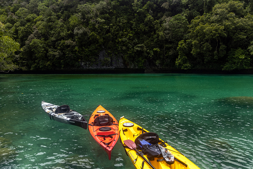 RD was anchored at the entrance to a bay known as Mandarin Fish Lake, named such because it is one of the best places in Palau to find the colorful and elusive Mandarin Fish. The bay is fed by a natural spring, that flushes sediment out into the open ocean as the tide recedes. This leaves behind crystal clear waters that are ideal for snorkeling and diving, but Finn wanted us to enter the bay on our kayaks before we jumped in to snorkel.
