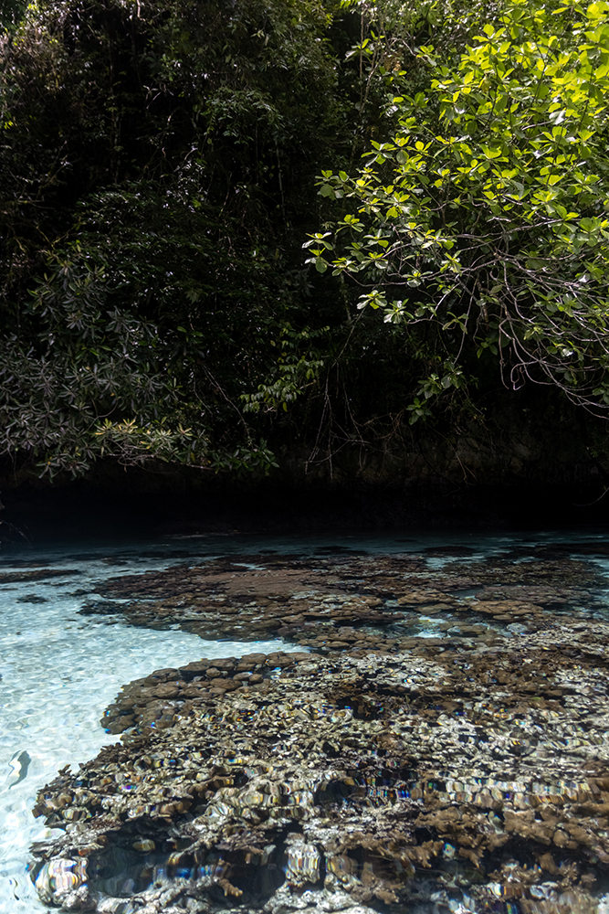 Next we stopped off in a cave where crocodiles can sometimes be found. Once again, we had no luck, but it was very cool getting to float into the dark cave, and then turn around to see light filtering in from the bay beyond its opening. This was also a great spot for to get a quick group photo before pressing on toward our first snorkeling spot.