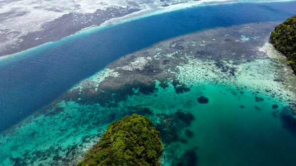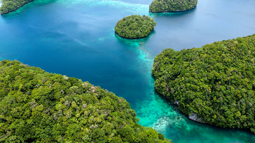 The speedboat was parked in another tranquil lagoon, and we tied off our kayaks, and climbed aboard to enjoy our lunches, Aloha juices, and a pack of peanut butter Oreos that Finn had packed. I swear, being outside and exercising enhances the flavor of any food you eat afterwards, and this was no exception. Lunch was downright delicious, and the view we got to enjoy while we ate was lovely. Vince even fired up his drone to get an aerial view of our surroundings. We didn’t have time to do a scenic plane ride over the rock islands (another very popular tour in Palau), so it was cool to get to see the islands from this perspective through his control screen.