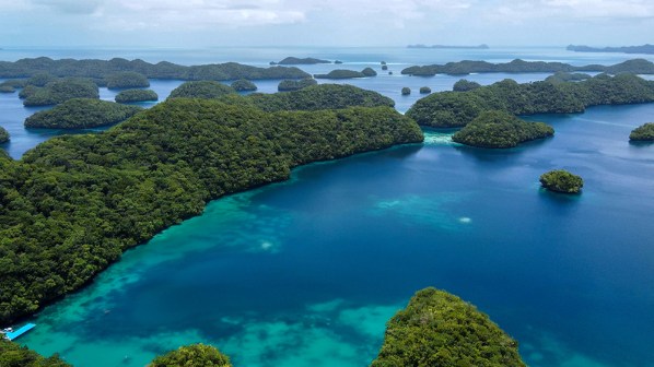Rhythmic splashes of paddles were the only sound to disrupt the awed quiet of an early morning as sunlight shimmered off of the emerald green waters of Palau’s rock islands. Above me, limestone cliffs crowned with lush, leafy trees rose from the sea. I inhaled a deep breath of warm, salted air. The humid morning smelled verdant underneath the overpoweringly fresh aroma of salt water. Suddenly, a high pitched, trilling whistle broke the silence, echoing down from the tree-topped stone and bouncing around the emerald bay I floated in until it felt like I was drowning in the sound. It was alien, and almost electronic, like the feedback of a microphone held too close to a speaker. I looked around at my companions to see their reactions to the unnatural noise, but they seemed as nonplussed as I was.