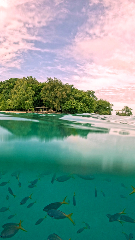 When we entered the lake, we were greeted by a school of orbiculate cardinalfish, relatives of the pajama cardinalfish we’d seen the day prior. These fish have no natural predators in the lake, so they haven’t developed fear of humans, and they swam right up to us.