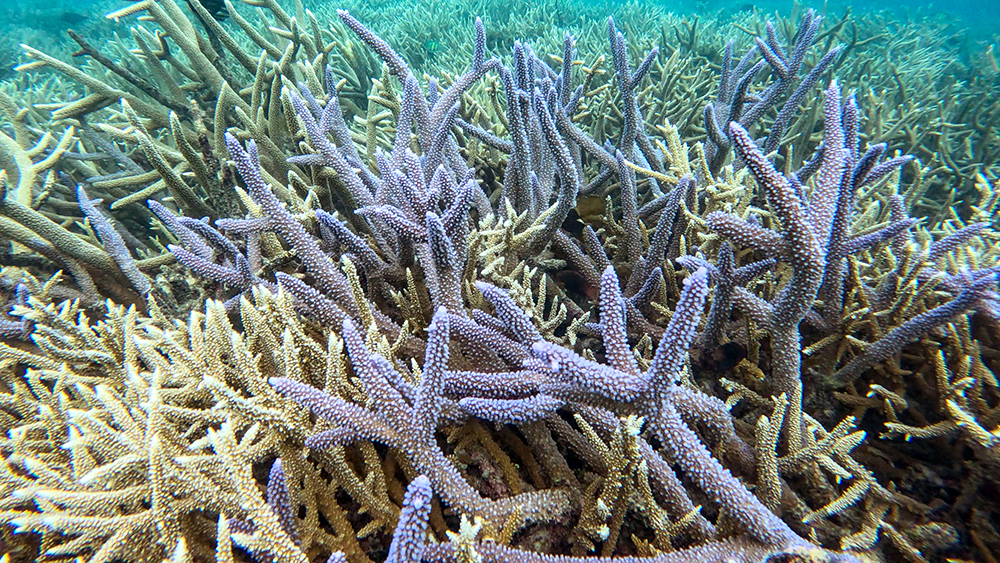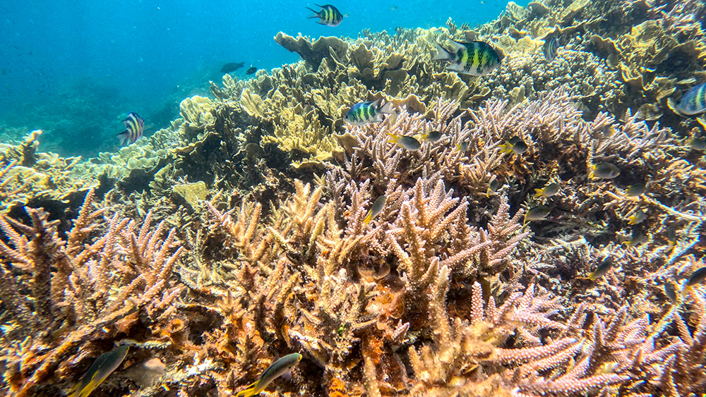 Now we only had one stop left to make, and this would be our last activity in Palau, and of our entire Micronesian vacation. We boated over to a nearby area with a strong current. This would be a drift snorkel over a patch reef that beautiful patches of purple staghorn coral mixed in with the more common orange staghorn coral.