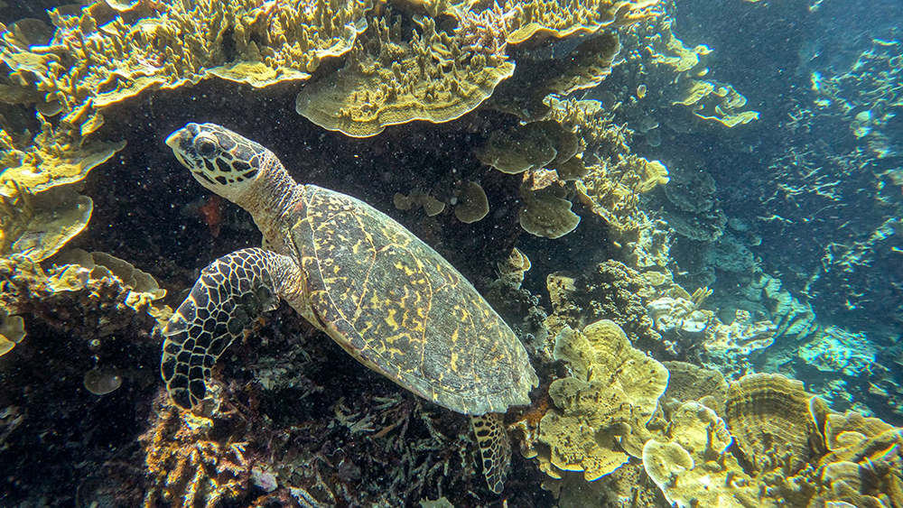 Hawksbills are critically endangered, so this was a really cool find. At this point I couldn’t tell you how many green sea turtles I’ve seen (not that I could ever tire of them), but this was only my third hawksbill sighting ever, so it was extra exciting. We watched as the turtle chewed on some coral, and then gracefully glided away over the golden reef.