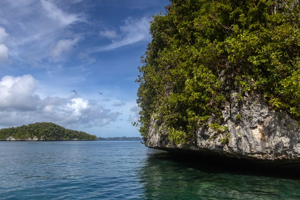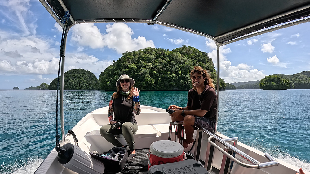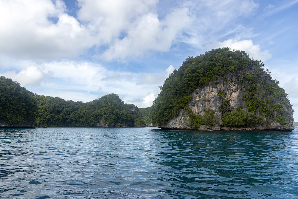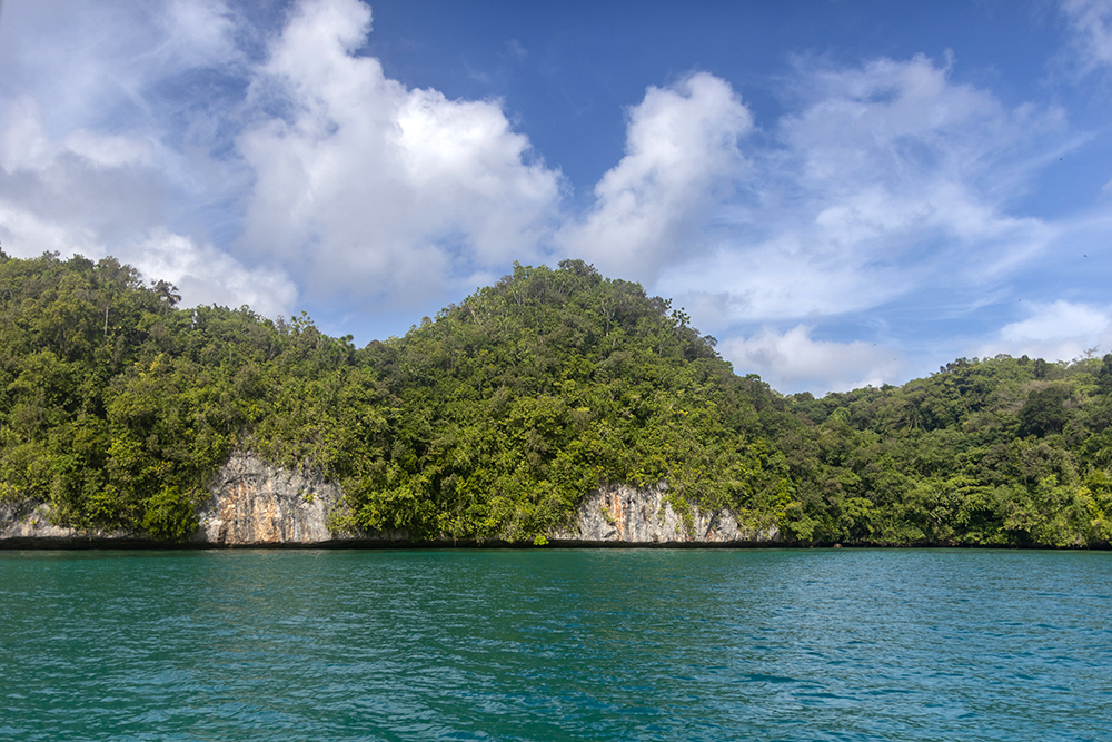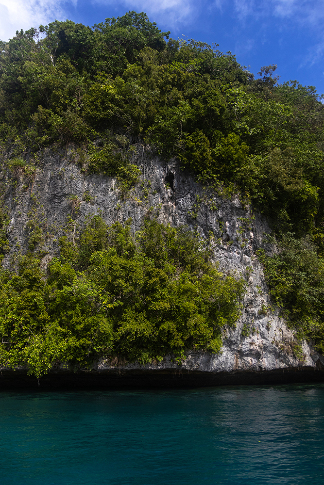 Our little boat listed dramatically to the side as captain RD took a sharp turn around a little island at breakneck speed. I leaned into the turn and craned my neck upward to get a good look at the island as we zoomed passed it. I grabbed for my hat as the wind tried to take it, and RD expertly threaded the boat through a tight gap between two more islands. We were just starting our last day in Palau, and it had already been an exciting morning.