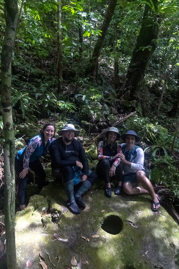During a short walk through a wet forest, Finn told us about the Yap coins history and how they were made. These giant coins were harvested by the Yapese, who didn’t have crystalline limestone on their own island in the present day Federated States of Micronesia. So they travelled 300 miles by outrigger canoe to carve these stones from quarries they dug in Palau, and then brought them by canoe back to Yap to be used as currency.