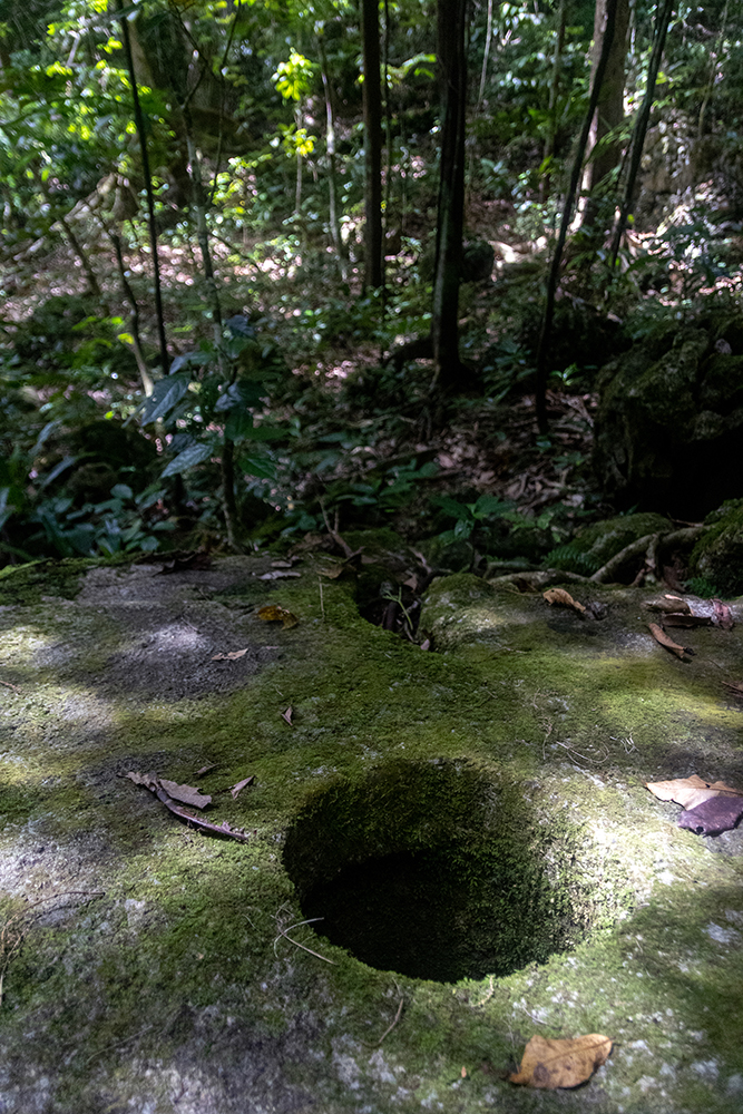 When we arrived at a gargantuan circular stone on the forest floor, Finn pointed to a large crack in it’s moss-covered form. He said that the stone was probably damaged when workers were attempting to move it from the quarry to a canoe. Damaged Yap coins were worthless, so they abandoned it where it still sits to this day.