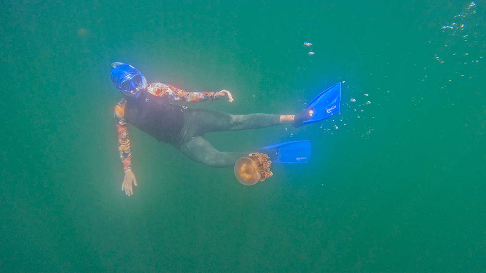 Finn allowed us a generous amount of time to swim in the lake, and even though we mostly saw moon jellies, I was still very glad we’d come to check it out. Palau’s marine lakes are a fascinating environment to learn about I was very happy to have seen some golden jellies, even if we didn’t get to see them in full force.