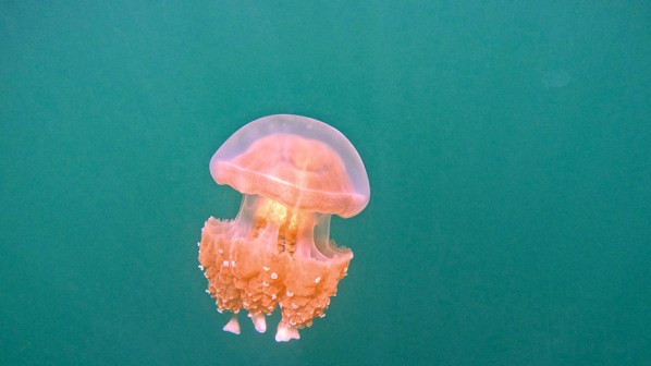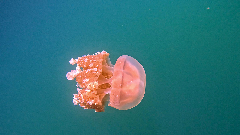 After a while, I found my first golden jelly. Gradually more and more of them came into view, although certainly not by the millions. The golden jellies were more beautiful to me than the moon jellies, and they seemed to glow from within whenever a beam of light hit them just right. They also moved much faster and with seemingly more purpose. Whichever direction they happened to be traveling in, they seemed on a mission to keep moving, and they simply wouldn’t be stopped.