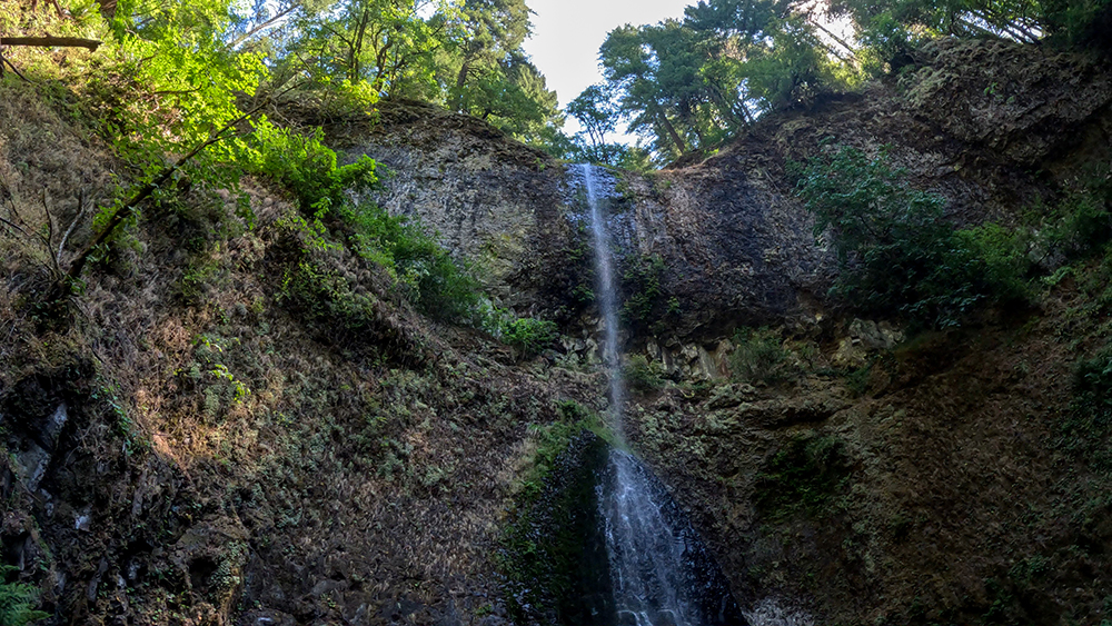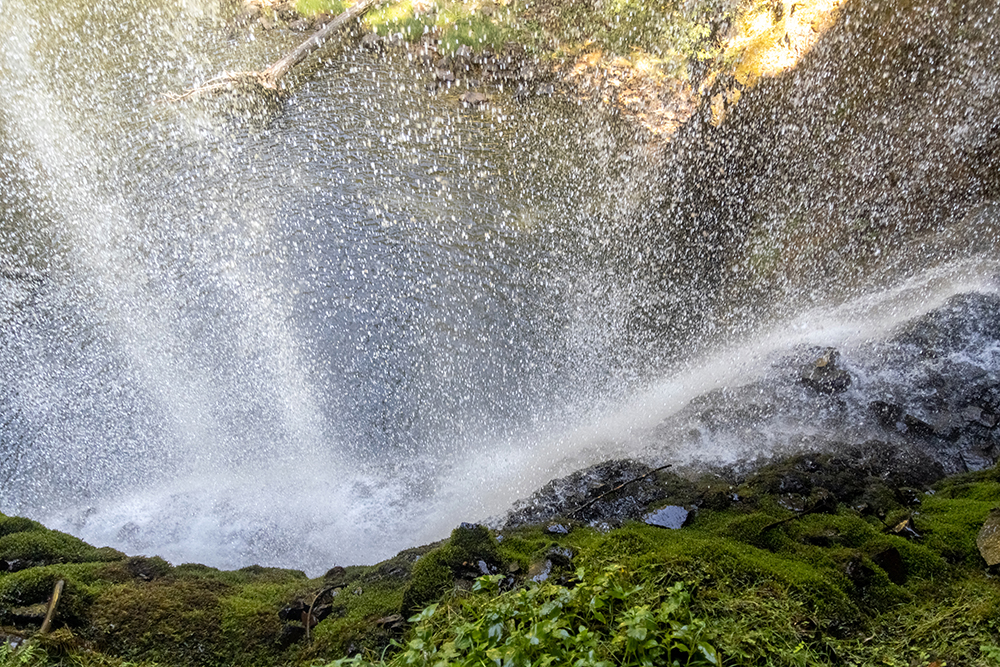 We hiked downhill until the trail veered off to pass behind the waterfall, where mist rising from the falls cooled the air around us like natural air conditioning. This was definitely one of my favorite waterfalls of the entire hike, and I really loved getting to walk behind it.