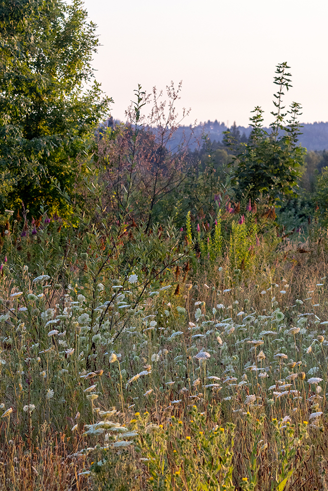 The short trail was lined with Queen Anne’s Lace (wild carrots) that glowed in the soft, orange light of the sunset. I ran my hands over their soft flowers as we walked, until eventually we came upon a small lake. There were lots of Canada geese and mallard ducks floating on its placid water. These are very common, not very exciting species throughout the US, so we weren’t too interested in them, but we did spot something significantly more intriguing swimming through the water. A small, furry head poked up above the surface, leaving a rippling wake behind it as it moved. None of us could agree on what the creature might be. It looked too big to be a muskrat and slightly too small to be a beaver. After much discussion, we decided it was probably beaver. After all, Oregon’s nickname is “The Beaver State” so it must have beavers.
