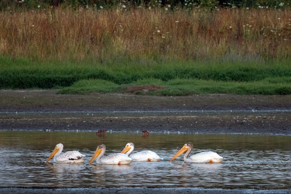 In front of where the eagle had landed, a smaller group of pelicans gathered to feed. This was amazing to watch, and we stayed there, spying on the pelicans and the eagle until it was time to leave the refuge.