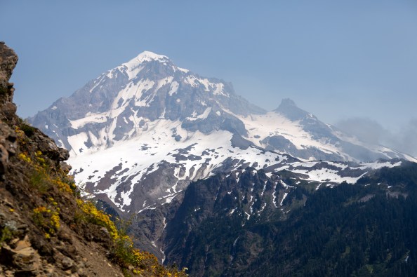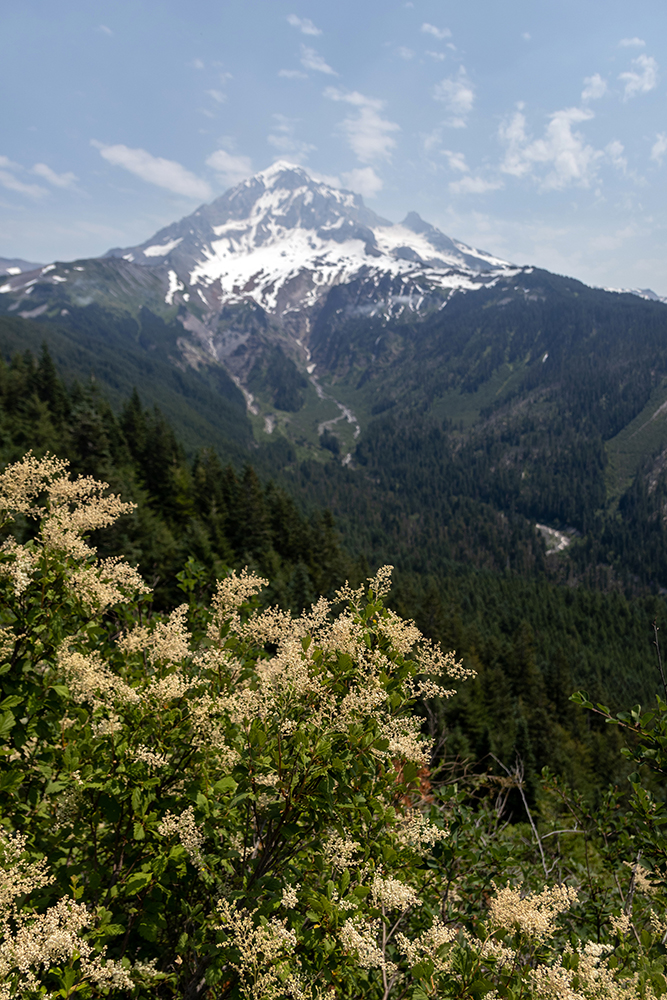 This was by far the most stunning view of Mount Hood I’ve ever seen. Last time we were in Oregon, it rained for most of our trip, and we only got some quick views of Mount Hood on our very last day. But this put those views to shame. Yellow and white wildflowers swayed in a gentle breeze, framing the backdrop of Mount Hood’s snowy peak to perfection. The sky was a dusty blue, and slightly hazy from the wildfires, and the forest and valley below us were deep, vibrant green. It looked as though the saturation had been dialed up on the entire scene. This was one of those rare occasions when real life looks like its been edited to perfection in Photoshop.