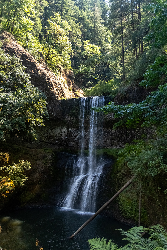 It didn’t take long to find the first of the seven waterfalls. The overlook of South Falls was right at the beginning of the hike, so we were immediately treated to a view of powerful water cascading off of a 177 foot drop over a cliffside made of basalt columns.