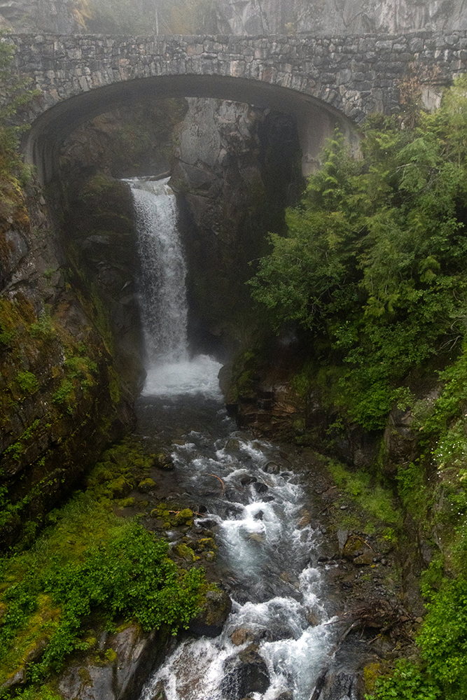 So we started driving the winding road back to the Paradise entrance station. Along the way, we stopped to check out Christine Falls, a double drop waterfall that is framed by a picturesque historic bridge.