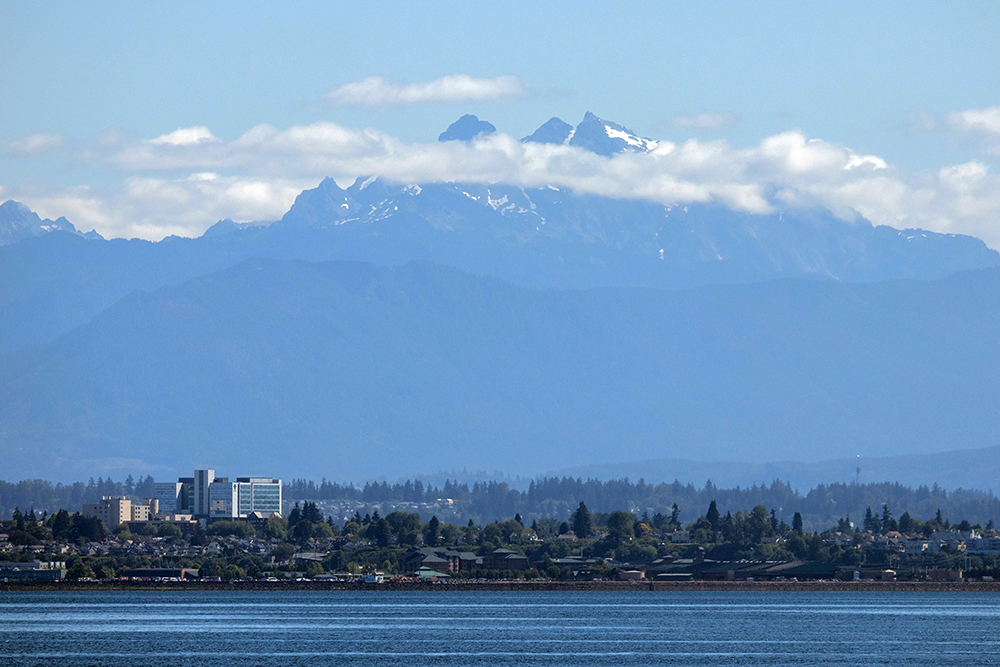 Whenever I visit the mountains, I try to remind myself that they have their own weather, and it isn’t going to bend to my wishes. For instance, when we went on safari in Amboseli National Park in Kenya, we saw Mount Kilimanjaro on two brief occasions during the two days we spent there. The rest of the time, it was so thoroughly hidden behind clouds that it was as if Africa’s largest mountain didn’t exist at all. The first time we visited Oregon, we had a similar experience with Mount Hood. The mountain only made an appearance on our very last day there. Still I always hope that we will get lucky enough to see these hidden giants when we visit areas like this. So far the weather had been exceedingly clear during our latest trip to the Pacific Northwest, but as Portland faded into the distance behind us, an ominous wall of clouds hung low in the sky in front of us.