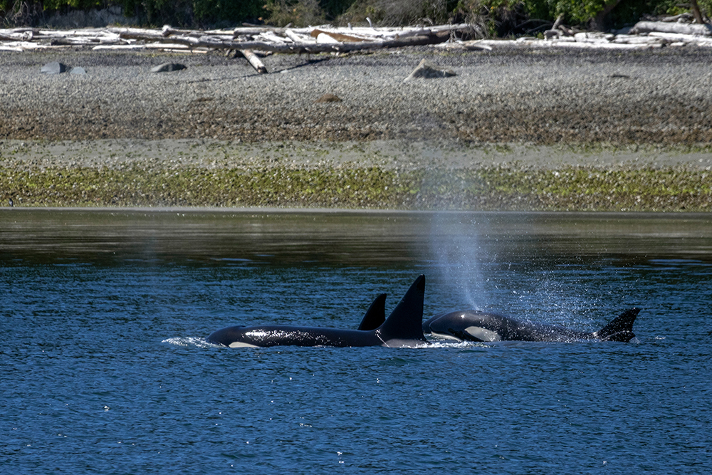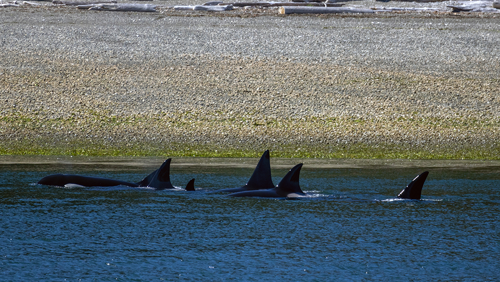 We were able to stay and watch the pod swim along the shore for a long time. At one point some people on shore noticed them, and raced to the water’s edge to watch them swimming by. It was fun to see the beachgoer’s reactions, and our naturalist said that seeing orcas from shore like this is very rare, even in a place where they are so common.