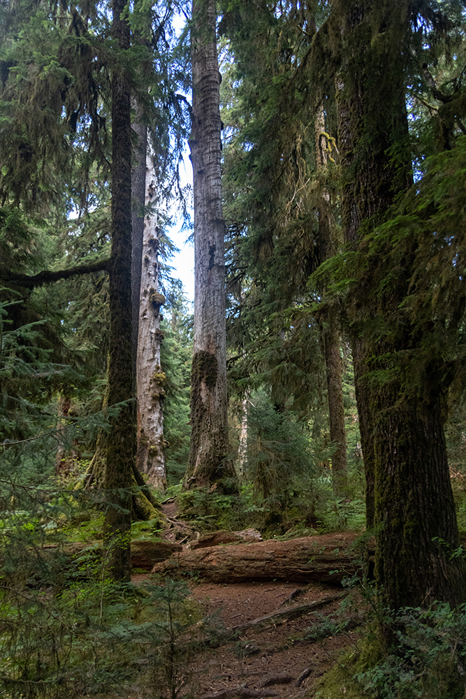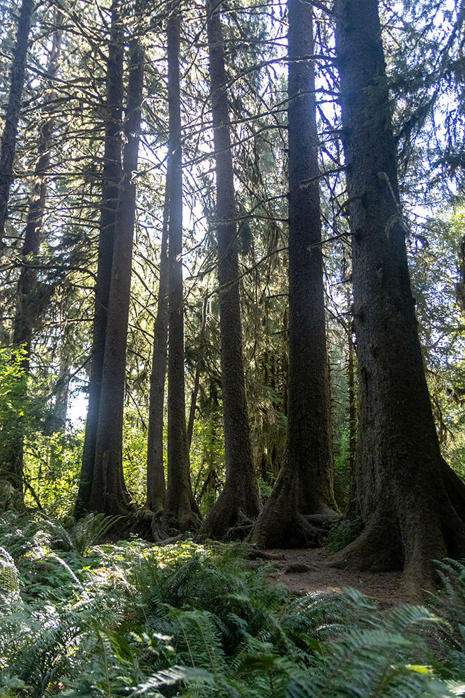 Even though the hall of mosses trail is less than a mile long, Vince and I spent a lot of time there because it was so peaceful and beautiful. When we finally finished the loop, we started off down the Spruce Nature trail in search of Roosevelt Elk. By now the afternoon was turning into evening, and I hoped that wildlife would begin to emerge if we stayed in the forest for long enough. We had no such luck, but instead enjoyed another loop through the magical Hoh Rainforest where we found more plush flora, and some more nurse logs along the 1.2 mile loop.