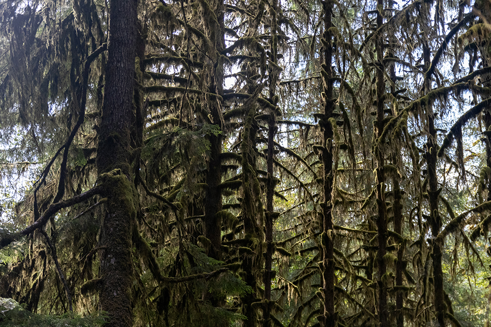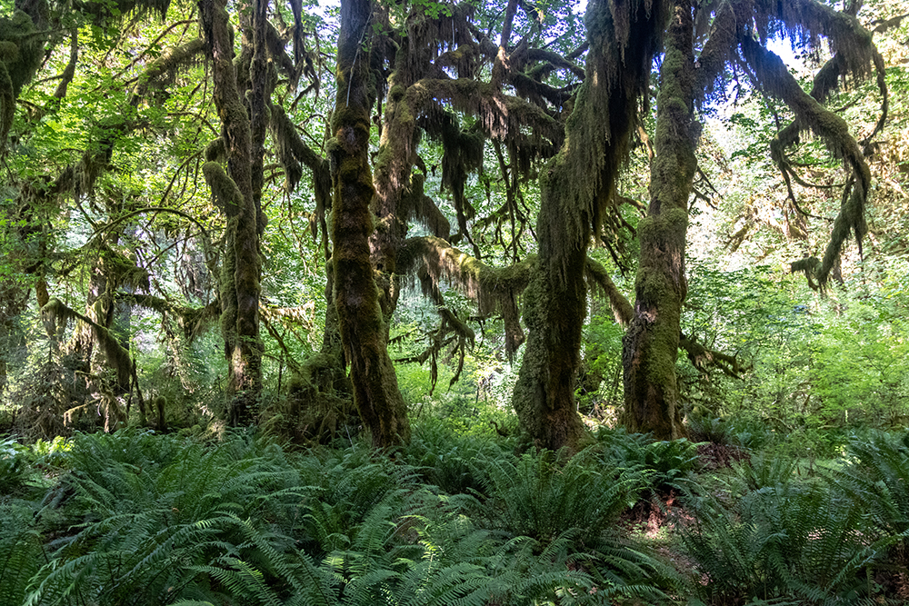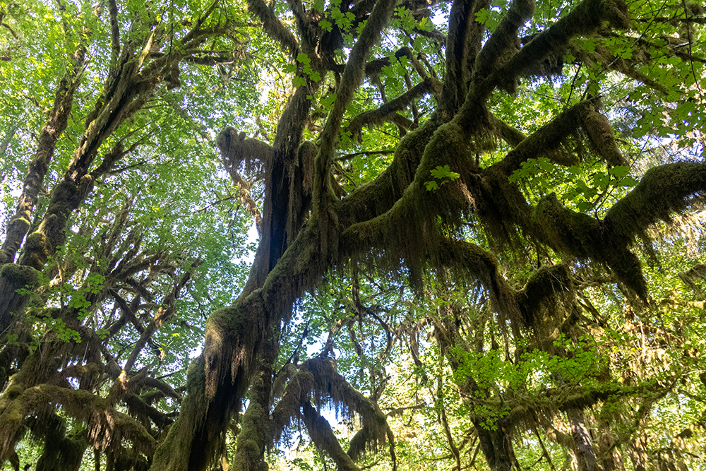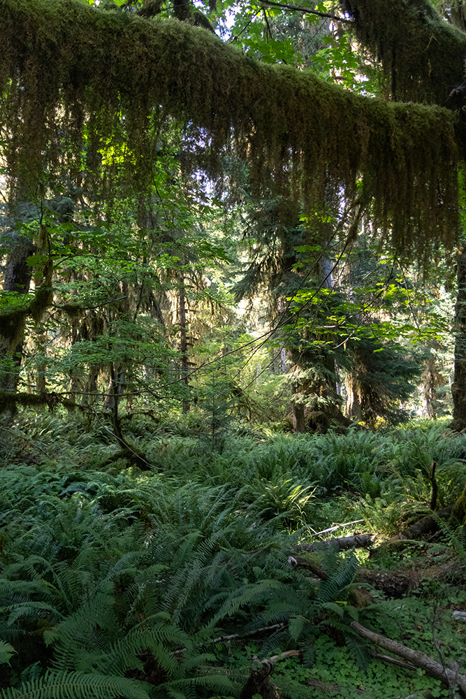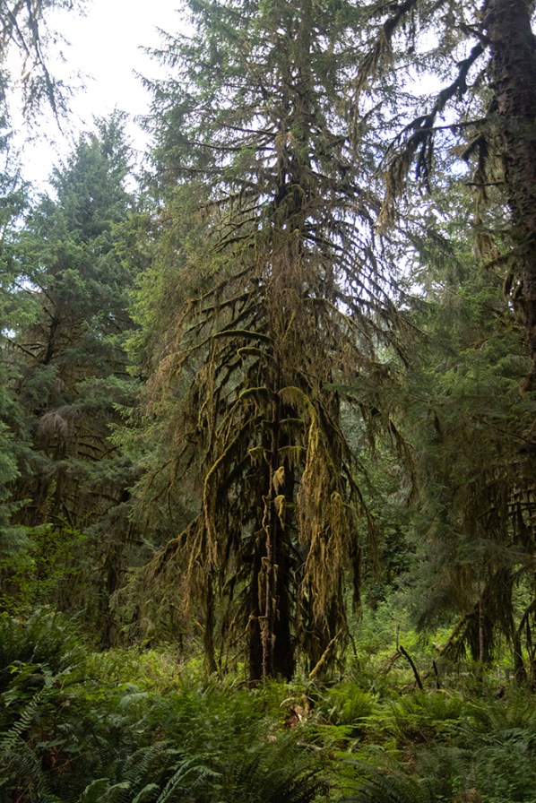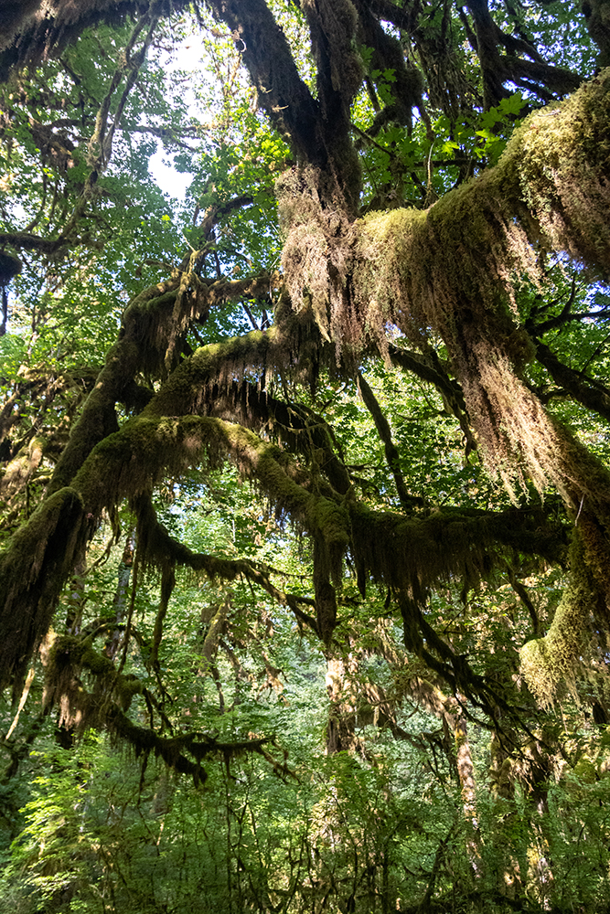 When you’ve done enough hiking in the Pacific Northwest, you start to get used to seeing moss-covered tree branches. But as we entered the Hall of Mosses, I realized that I had genuinely never seen anything that compared to how mossy this forest was. Verdant moss practically dripped from every branch, and thick ferns curled up from the forest floor.