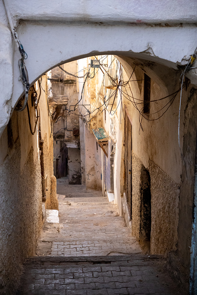 We lingered at the viewpoint for a while, watching the bustle of the city below us, and when we finally descended back to the street, it was time to make our way out of the Casbah. So we continued downhill, and as we got closer and closer to the sea, the architecture of the city began to change. We emerged onto a street lined with French Colonial style apartment buildings where each unit had a satellite dish attached to its balcony making for a chaotically compelling scene.