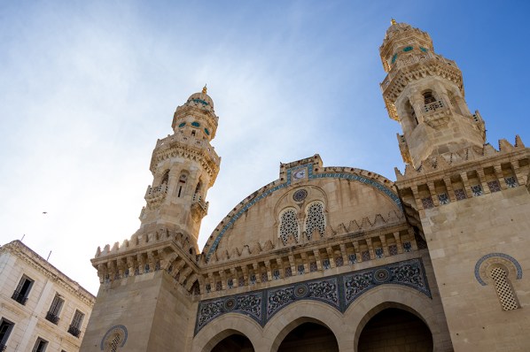 An Algerian flag rippled gently overhead as we crossed under an arched entryway into the old city, where we started our tour with a quick stop at fortress that was once used for the production and storage of gunpowder, and a visit to a palace to see its mosque. Here we saw a large lamp decorated with carvings of the ninety-nine names of Allah.