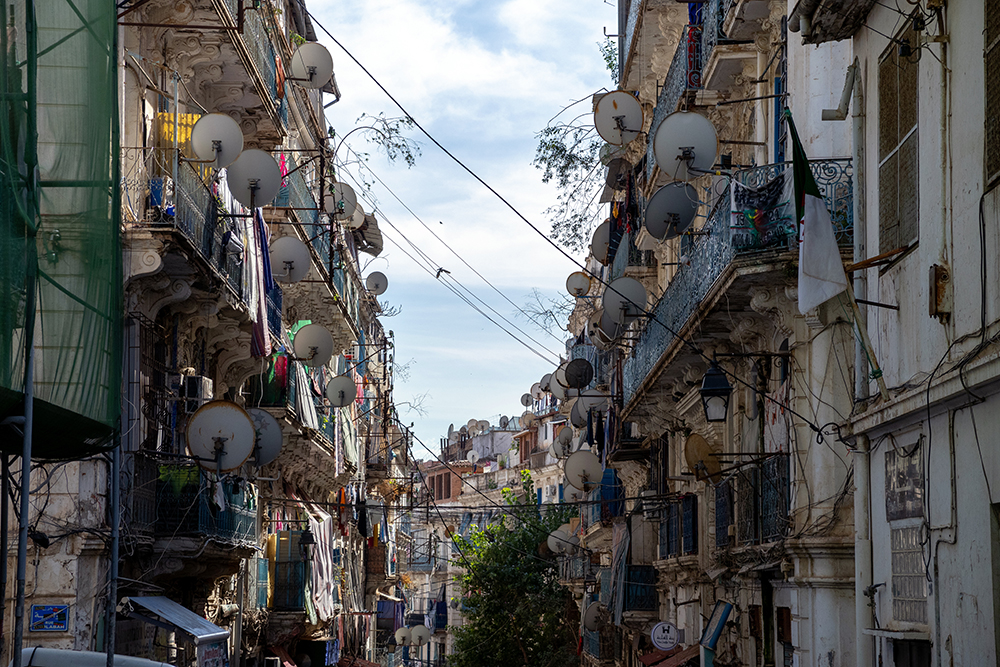 We lingered at the viewpoint for a while, watching the bustle of the city below us, and when we finally descended back to the street, it was time to make our way out of the Casbah. So we continued downhill, and as we got closer and closer to the sea, the architecture of the city began to change. We emerged onto a street lined with French Colonial style apartment buildings where each unit had a satellite dish attached to its balcony making for a chaotically compelling scene.