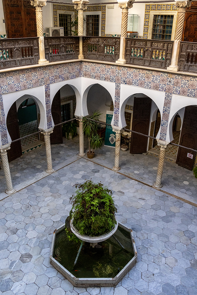 An Algerian flag rippled gently overhead as we crossed under an arched entryway into the old city, where we started our tour with a quick stop at fortress that was once used for the production and storage of gunpowder, and a visit to a palace to see its mosque. Here we saw a large lamp decorated with carvings of the ninety-nine names of Allah.