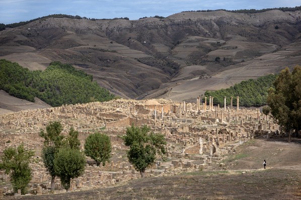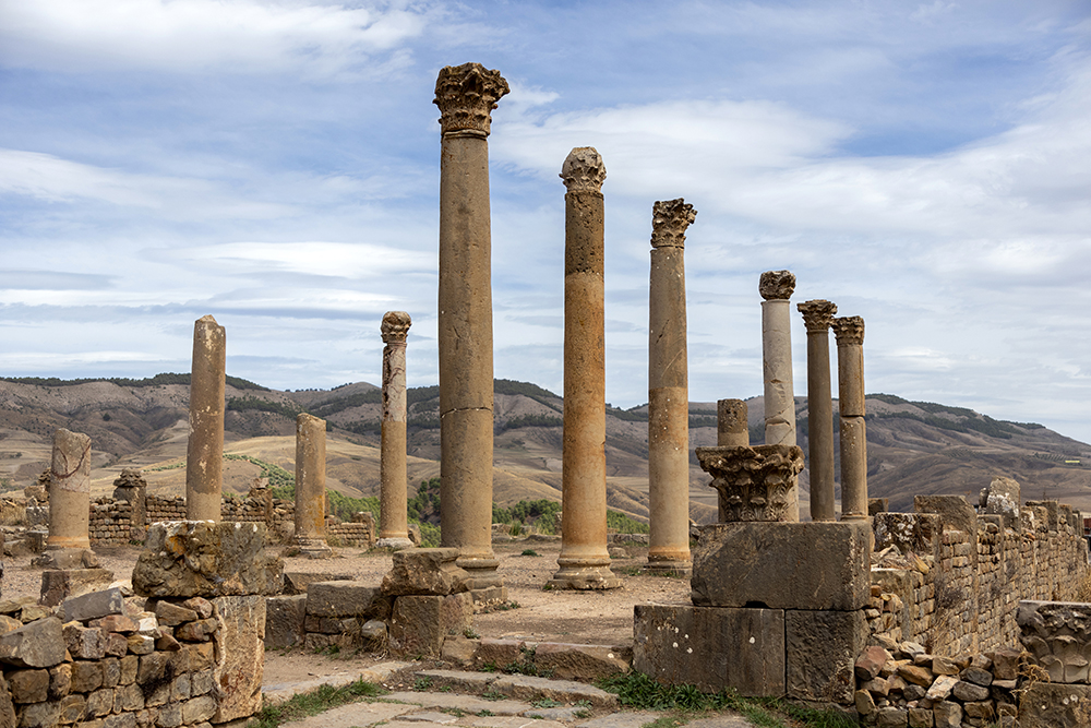 I should have felt excitement when I first caught sight of the distant pile of crumbling stone nestled in a valley surrounded by rolling mountains. Our driver, Nadir, from Izelwan Travel pulled over to the shoulder of the winding road we’d been traveling, allowing our group of six friends to hop out for a first look at the ancient Roman ruins of Djémila. This was one of the sites on our itinerary that I was most anticipating, so it would stand to reason that I would feel something at least slightly profound knowing that we were mere minutes away from setting foot in the stone city. But the only emotion I could muster was relief as my feet relished the solid ground of the roadside. We’d been driving since sunrise, leaving Algeria’s bustling capital city behind us as a pink daybreak glowed on the horizon. Most of our journey through the Kabylie mountain range had been scenic and uneventful, but within the past half hour or so, I’d become increasingly nauseous as we gained elevation and wound around tight switchbacks in our fifteen passenger Mercedes van. Eventually I’d admitted defeat, accepted a jar of peppermint oil to smell from Rachel, grabbed a plastic bag, and moved to the front seat next to Nadir. I was beyond ready to take a break from driving, and walk off this random bout of car sickness.