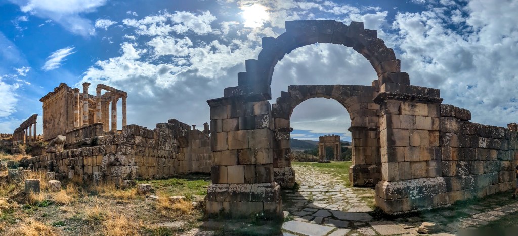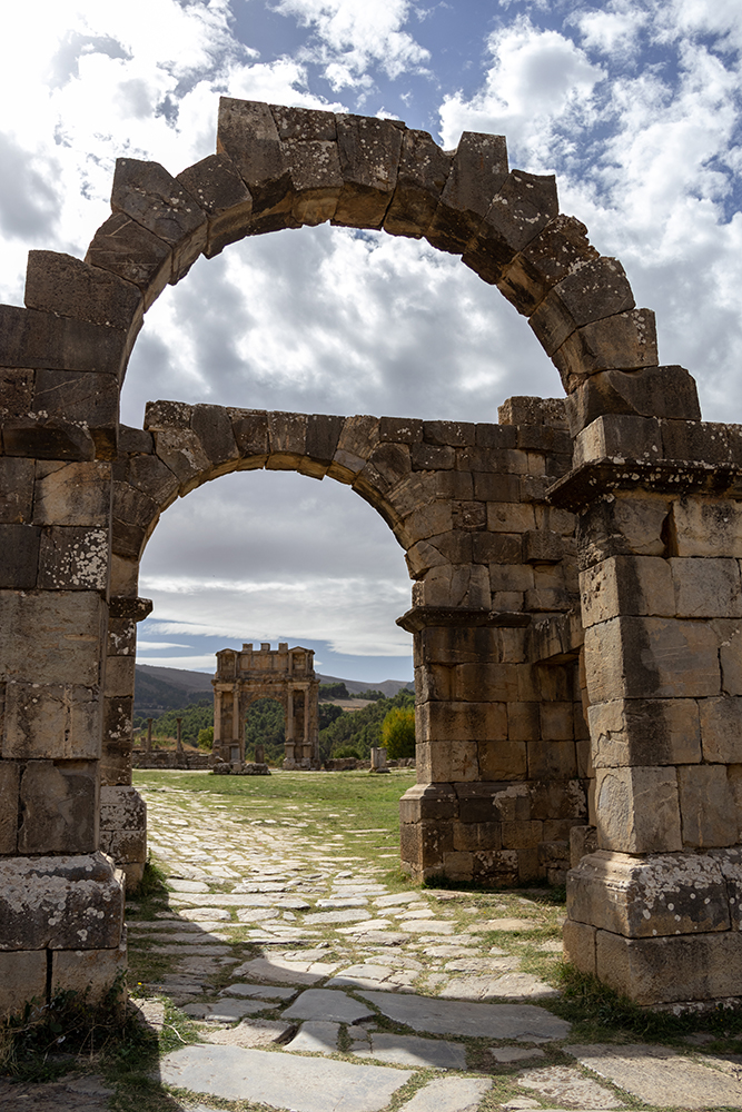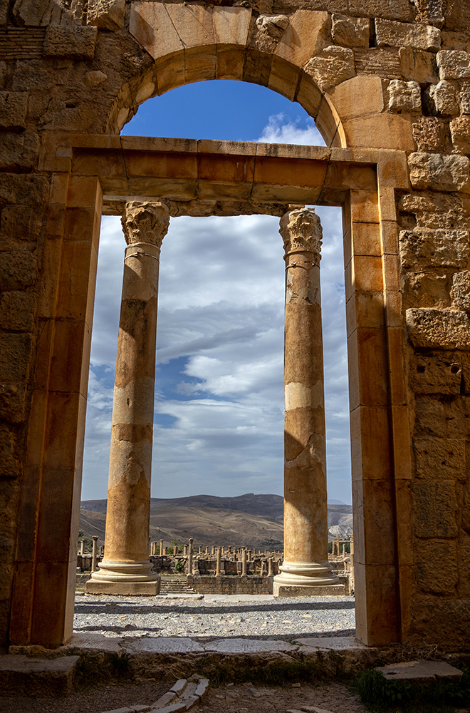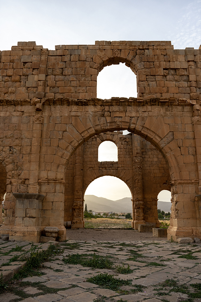 Not only was the temple itself hauntingly beautiful, but its vantage point also offered a wonderful view across the forum to the magnificent triumphal arch. A light breeze played with my hair as I looked out across the site in wonder, trying to imagine what it would have been like to live there in its heyday. It was then that I noticed how utterly quiet Cuicul was. We’d seen a couple of other visitors since we’d arrived, but they were easy to lose track of whenever they disappeared behind a wall or into a building. Looking out over the forum now, it felt as if our group were the only living souls in the city. I took a moment to reflect on how incredibly special that was. Having an ancient ruin of this caliber basically to ourselves is a rare experience, and I made sure to appreciate the peace and solitude as I followed the others back down the temple steps.