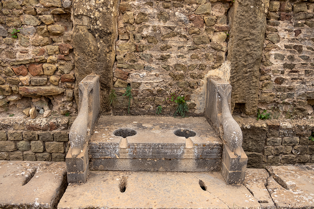 Although they’d been our last stop in Djémila, the toilets were our first stop upon entering Timgad. Somehow these ones were even more impressive than the ones we’d seen yesterday. They came complete with carved armrests, and oddly, they were also built in pairs. Each seat had two holes in it, and we joked about being able to use the toilet with all of your friends and family.