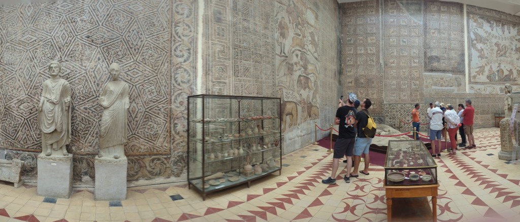 The museum looked unassuming from the outside, but as we stepped over it’s threshold, my jaw dropped open in amazement. Every inch of the gallery’s floors and tall walls was covered in mosaic tiles. We’d seen Roman mosaics in the other museums we’d visited so far on our trip, but this put them all to shame. I craned my neck upwards, scanning the intricate tilework until my gaze reached the ceiling. Then I spun around in a slow circle, taking it all in. The others were following suit, and I noticed Nadir smiling at our awed reactions.
