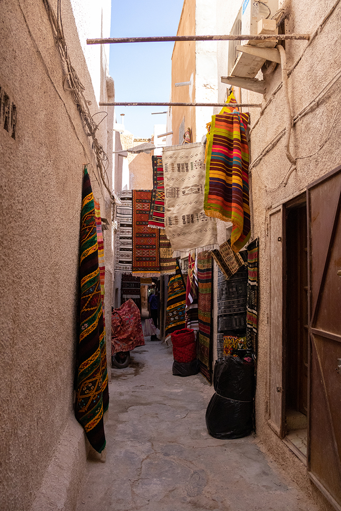 Ghardaïa was established almost a thousand years ago, and has been continuously inhabitated by the M’zabite people, a Berber ethnic group, ever since. The people of the M’zab valley are renowned for their handicrafts, especially hand woven rugs and textiles, and our first destination of the morning was to the local souk to shop for some of these works of art.