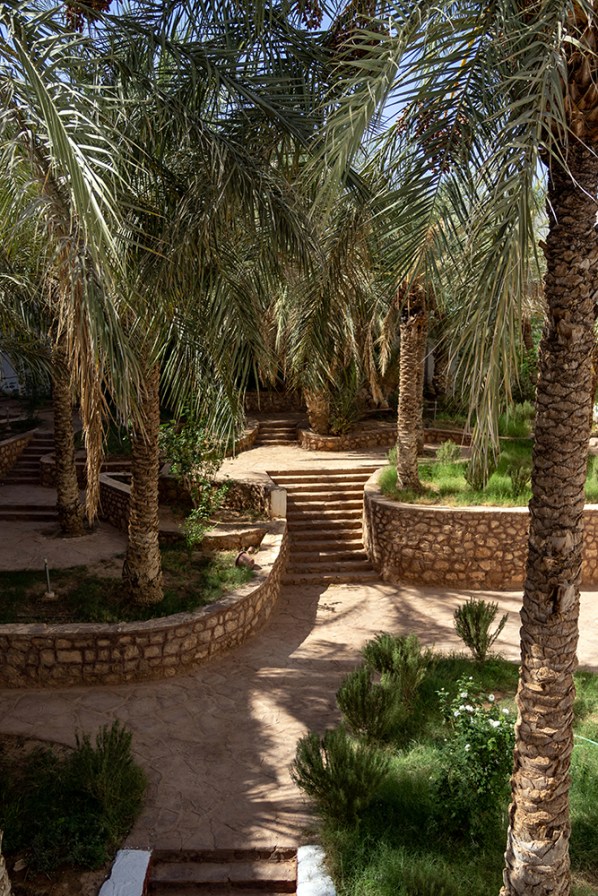 We met back up with our van, and started driving towards a rural settlement on the outskirts of the city. Along the way, we got to stop at a couple more viewpoints to see more views of Ghardaïa, a palm grove, and a hotel decorated in traditional Berber style.