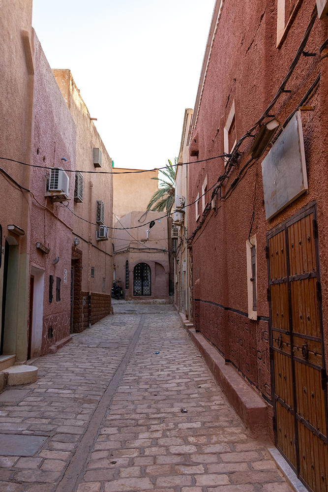 By now we were coming dangerously close to running out of daylight, and our guides had a plan for where we would watch sunset so we had to start moving faster. We rode over to Beni Isguen, a walled village with narrow, pedestrian streets. Foreigners are only allowed to enter if accompanied by a local guide, are only permitted to visit certain areas of the village, and cannot stay overnight. Our guide led us through the maze of streets, explaining how different elements of the architecture help to keep the village’s inhabitants cool, even in the intense desert heat.