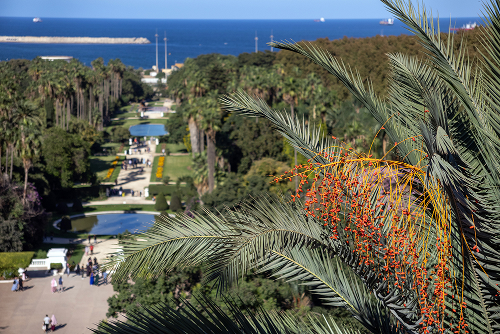 When we arrived back at the French section of the garden, the fountains were running, and rainbows had formed in their mist. We went around to the end of one of the fountains to get another amazing view of the Martyr’s Memorial on the hilltop behind the plumes of water. Then it was time to leave the garden so we could visit one more location before catching our flight to Oran.