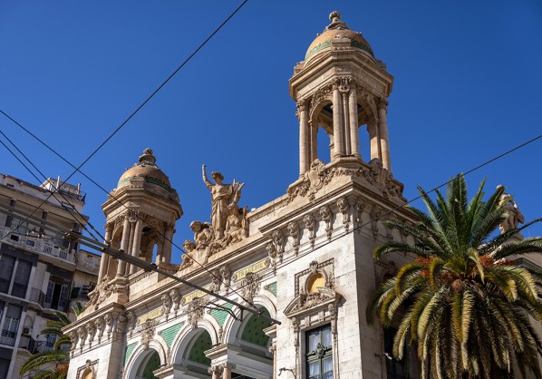 Moving on down the street, we next stopped at Place du 1er Novembere, a large square surrounded by historic buildings with intricately decorated exteriors. Our favorite of these buildings was the Regional Theater of Oran, an opera house with a façade of beautifully sculpted stone.