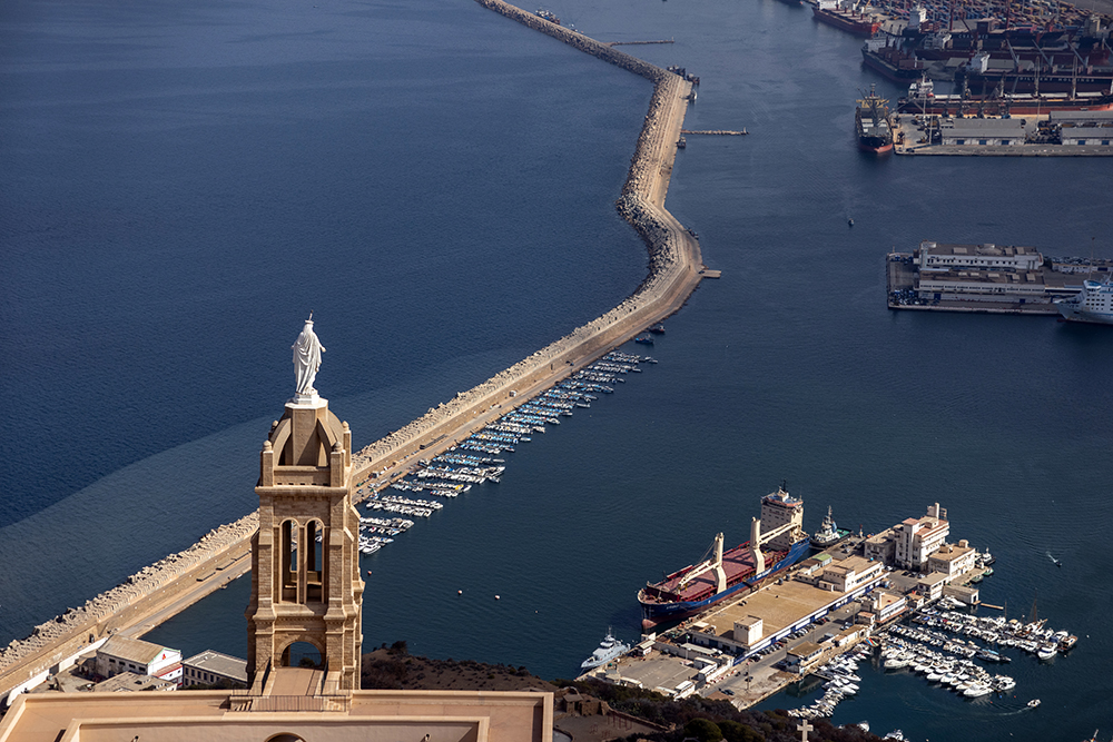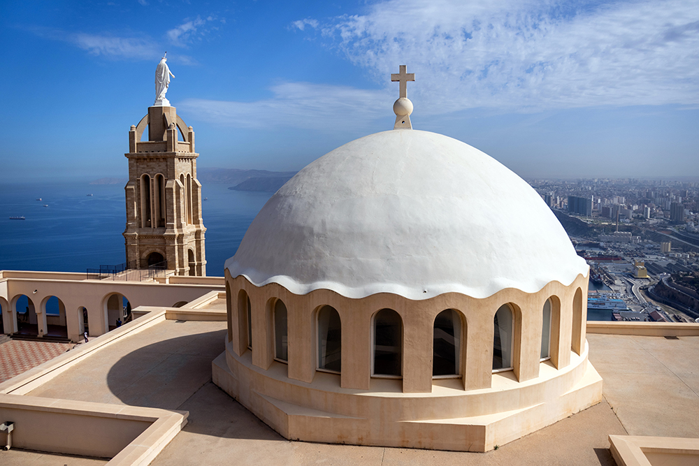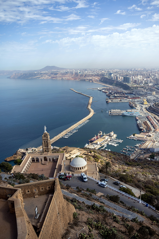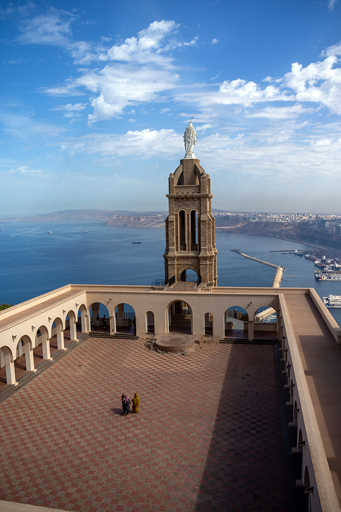 Once we reached the gate of the fort, we stepped inside and continued our climb, stopping to explore various chambers as we made out way towards the very top of the rampart. When we finally stepped out onto the roof, we were met with a strong breeze, and the most beautiful view overlooking Oran and the sea. From this vantage point, it was easy to see why Oran is sometimes called “The Radiant City.” Thousands of buildings melded into the landscape below us, as a Statue of the Virgin Mary looked out over the city from her perch atop the Santa Cruz Chapel.
