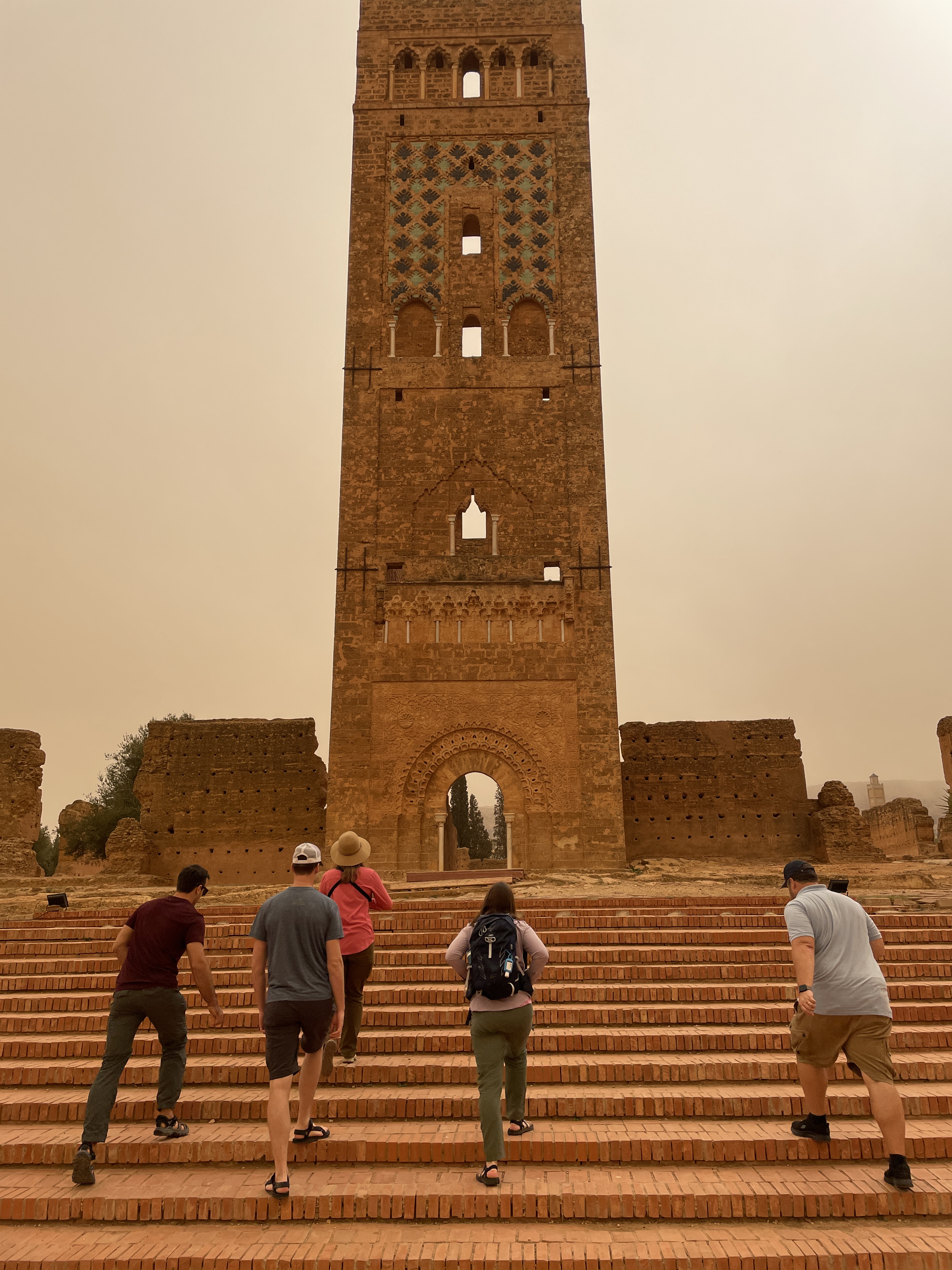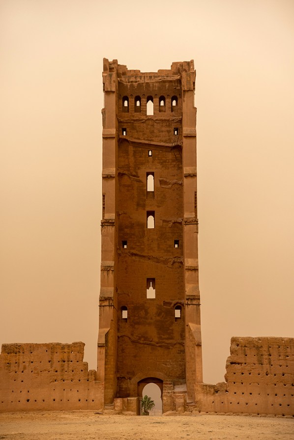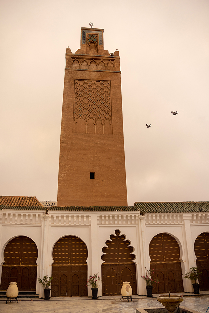 Once again, we were beyond grateful that we’d been able to tour such a fascinating location even though it was closed for cleaning, and we thanked the site guide before setting out for our next destination. The dust storm had only intensified during our visit to the palace, and by the time we reached the Mansourah Mosque, the atmosphere had grown downright apocalyptic.