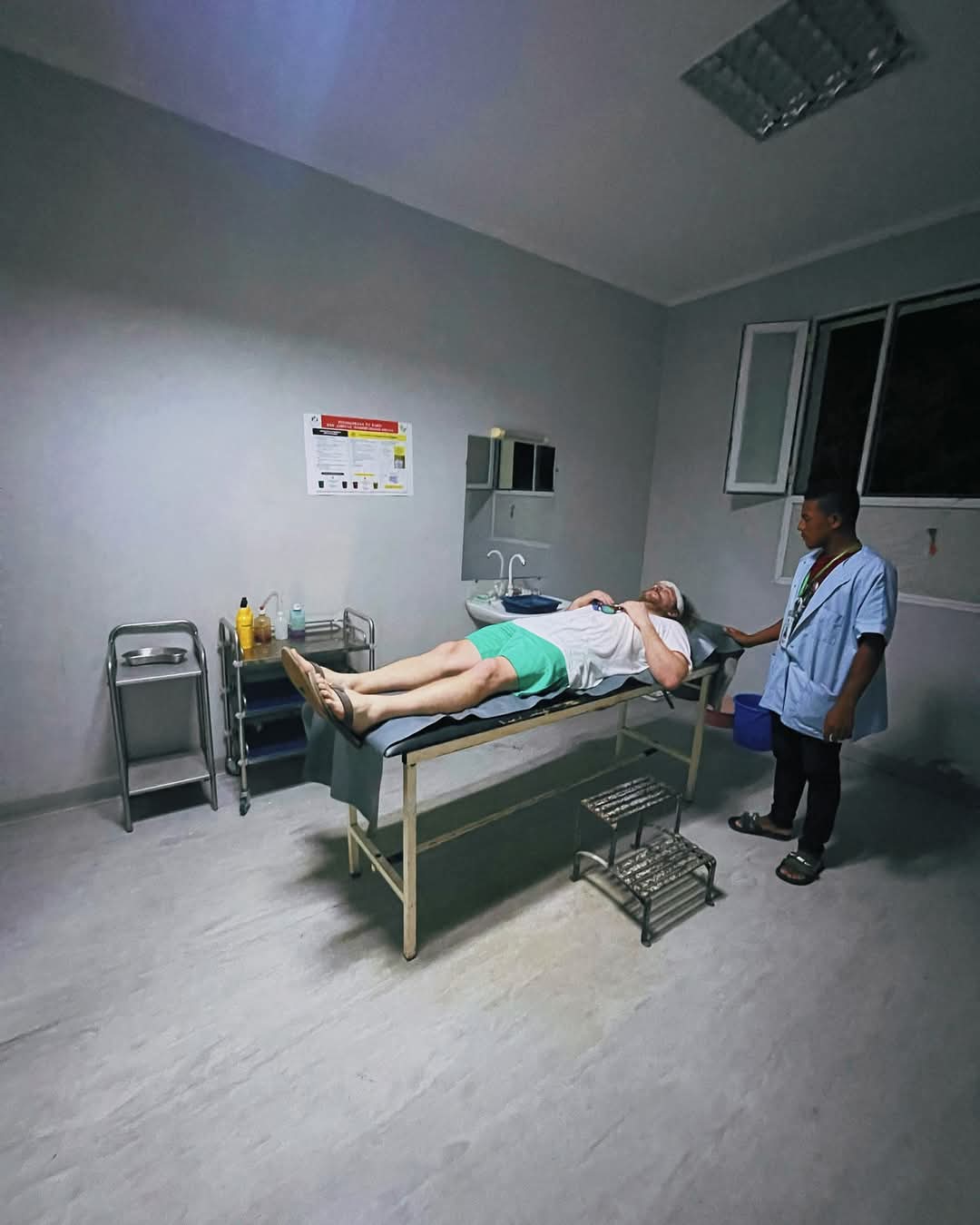 We arrived at the hospital after dark, and it didn’t look open. The doors were unlocked so we went inside and wandered through the halls until we found a doctor. Thankfully, Zu had come with us to translate, and he was able to relay information back and forth between us and the doctor. At first, the doctor thought the wound would only need to be cleaned and bandaged. He sent Vince to a nearby pharmacy to buy iodine, surgical gloves, and bandages, then started cleaning. Once he’d wiped the blood from Caleb’s forehead, he realized that the cut was deeper than he initially thought, and would need stitches. So Vince went back to the pharmacy to get all the necessary supplies. A few minutes, and three stitches later, Caleb was all set. The doctor gave us a prescription for antibiotics and some basic care instructions. The whole visit cost about twenty-three USD.