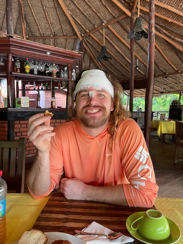 He decided he still wanted to go for it, so he got back on his feet and had a few bites of his breakfast before it was time to head out for our morning hike. Unfortunately he’d also lost his crown off of his front tooth (which he originally cracked in half by falling off his bike in grade school), so he’d have to live with that until he could see his dentist back in the US.