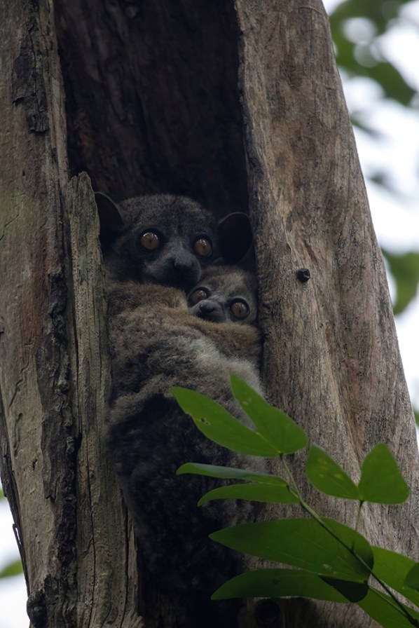 He’d found a mother and baby red-tailed sportive lemur. These are nocturnal lemurs, and judging by the looks on their faces, the duo seemed to be regretting their choice to be awake in broad daylight. They blinked down at us with their wide, brown eyes, wearing expressions that looked a bit startled. Their actions however, told a different story. They lazily groomed each other, and popped in and out of their hole a few times, leading me to believe that the looks of surprise were a result of their uncannily round eyes, and not their emotional state.