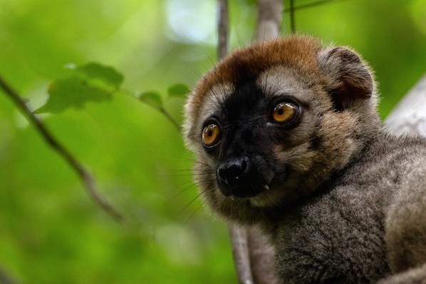 Before long, we heard a signal call echoing through the forest. It was our spotter alerting us that he’d located some lemurs, and we should meet up with him. Our guide called him to confirm his location and then relayed some exciting news. The spotter had found both of the lemurs we were looking for, and they weren’t far away from each other. So we sped through the underbrush, following our guide off-trail until we ran into a troop of red-fronted brown lemurs.